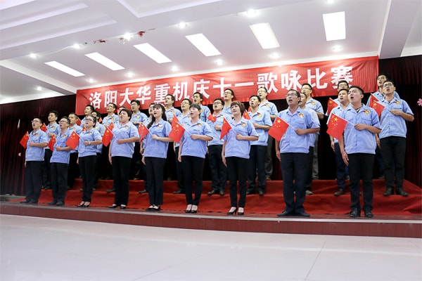 在抗戰(zhàn)勝利70周年紀(jì)念之際,我們又迎來了建國66周年。為慶祝這一特殊的節(jié)日。我洛陽大華重機(jī)公司特舉辦了2015年“慶十一”歌詠比賽。9月30日下午,全體員工歡聚一堂,再次用歌聲唱響旋律,用歌聲喚醒記憶,用歌聲表達(dá)我們對祖國深深的愛意。忠誠于黨,就是要堅(jiān)決聽黨指揮。熱愛人民,就是要全心全意的為人民服務(wù),為建設(shè)富強(qiáng)、民主、文明、和諧的社會(huì)主義現(xiàn)代化國家貢獻(xiàn)力量。