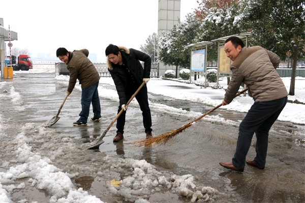 同事們不畏嚴寒,積極主動、相互配合、齊心協(xié)力,冒著凜冽的寒風(fēng),清掃著冰雪的路面,許多人的手和臉都被凍得通紅,鞋子也被浸透,然而,這一切絲毫沒有影響大家的勞動熱情,他們團結(jié)協(xié)作,掃的掃、鏟的鏟井然有序的干的熱火朝天,經(jīng)過一個多小時的奮戰(zhàn),公司辦公樓、車子棚及各車間通道都被打通,確保員工出行和樹木安全。