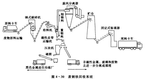 幾乎沒有一個廢物資源回收廠能備置得起一整套分離和回收利用各種金屬 的系統(tǒng),因此,這些廢物一般都賣給其他處理廠。然而,通過選擇性地回收一種 或幾種有經(jīng)濟效益的金屬是可以實現(xiàn)的.如圖4—30所示。
