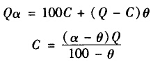 (2)原料中小于篩孔尺寸的粒級(jí)的質(zhì)量,等于篩上產(chǎn)物與篩下產(chǎn)物中所臺(tái)有的小于篩孔尺寸的物料的質(zhì)量之和,即Qα=100C+Tθ(2-1-5)