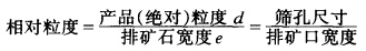 該曲線是由大量生產(chǎn)數(shù)據(jù)的平均統(tǒng)計得來的。生產(chǎn)實踐證明,用同一類型碎礦機破碎礦石,產(chǎn)品的粒度特性曲線形狀取決于被破碎物料的性質(zhì),主要的是它的硬度。因此在沒有實際資料的情況下,可以運用這三種典型粒度特性曲線。為了運用方便,橫坐標不是直接用粒度的絕對值表示,而是用相對粒度表示。它們之間的關(guān)系如下: