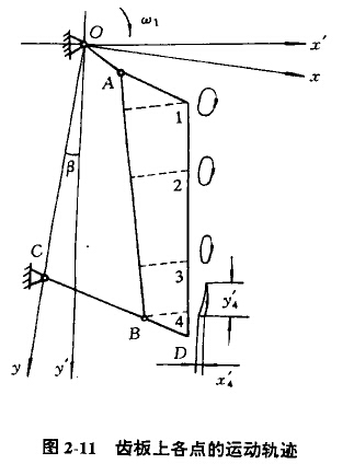 復擺領式破碎機運動分析機構(gòu)模型如圖2-8所示入點是齒板上的任意點,在直角坐標系xOy中,s點的位移方程為