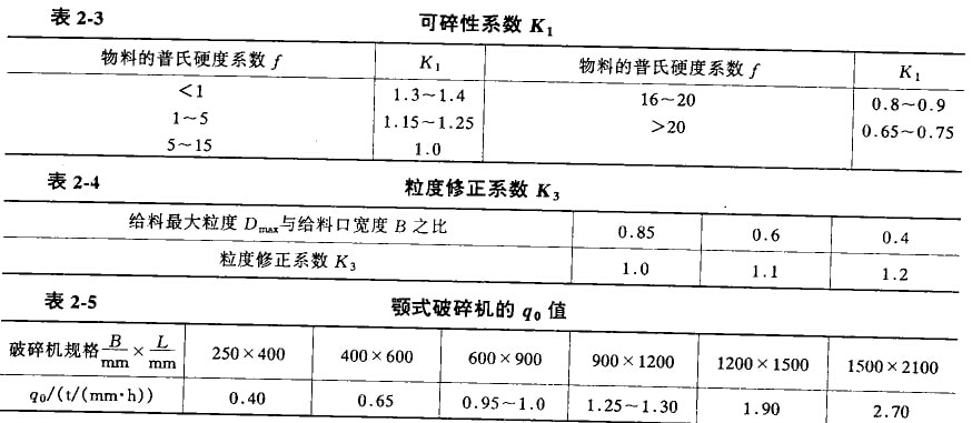 q0——單位排料口寬度的生產(chǎn)能力,t/(mm·h),查表2-5;