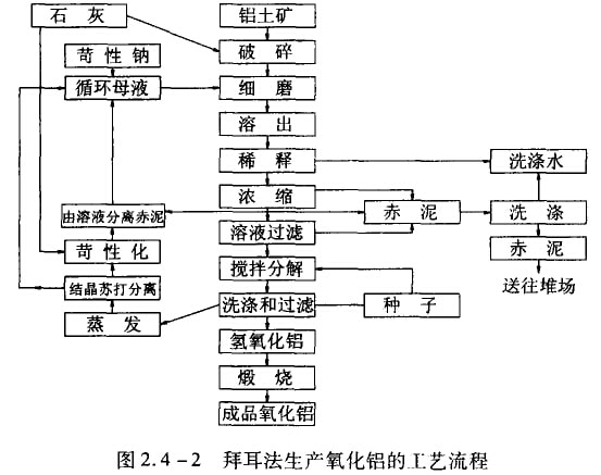 自拜耳法發(fā)明以來,它一直是氧化鋁生產(chǎn)占絕對(duì)優(yōu)勢(shì)的一種方法,目前全世界90%氧化鋁是使用拜卑法生產(chǎn)的。圖2.4-2為拜耳法生產(chǎn)氧化鋁的工藝流程。