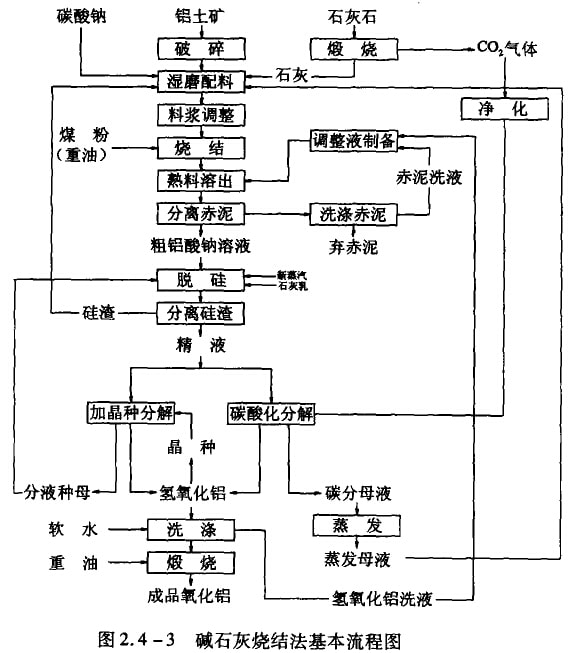 燒結(jié)法流程比較復(fù)雜,能耗大,產(chǎn)品質(zhì)量一般不如拜草法,但燒結(jié)法能有效地處理高硅鋁土礦(如鋁硅比3-5),而且所消耗的是價(jià)格較低的碳酸鈉。
