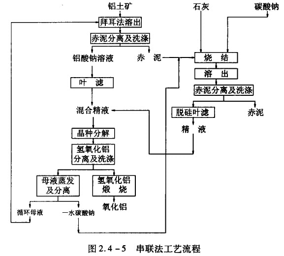 除上述串聯(lián)法和并聯(lián)法之外,還有所謂的混聯(lián)法,它是將拜耳法和同時(shí)處理拜哥法赤泥與低品位鋁土礦的燒結(jié)法結(jié)合在一起的聯(lián)合法;炻(lián)法是處理高硅低鋁原料的有效方法。