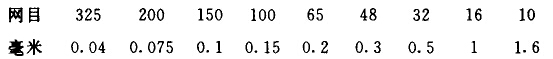 細(xì)料通過篩分得到篩上物和篩下物,分別在篩孔尺寸數(shù)字前冠以。十”號和“一”號表不;而從上下層篩網(wǎng)之間排出的物料,則以上下篩孔尺寸的范圍表示。篩孔尺寸大小一船用毫米表示。對于粒度很細(xì)的物料,則常用網(wǎng)目表示(簡稱“目”)。網(wǎng)目是指1英寸(25.4mm)長的篩網(wǎng)上所具有的大小相同的方孔數(shù)目。根據(jù)國際標(biāo)準(zhǔn)篩制,網(wǎng)目和毫米的對應(yīng)關(guān)系有:
