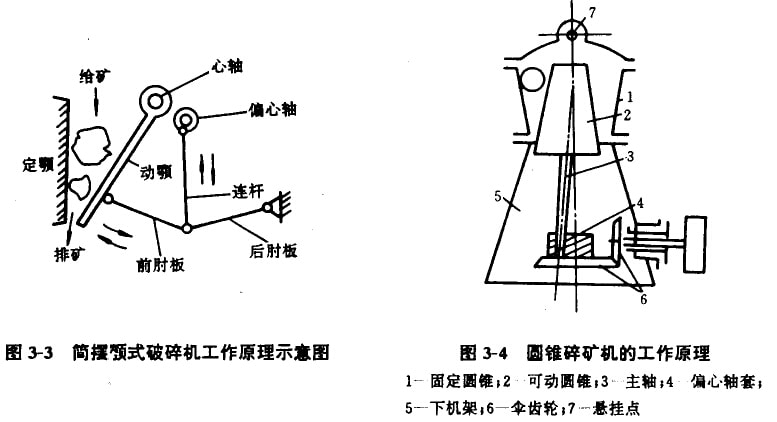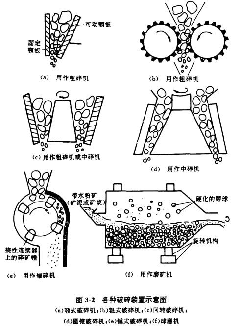 各種破碎機(jī)作業(yè)原理見圖3-2。