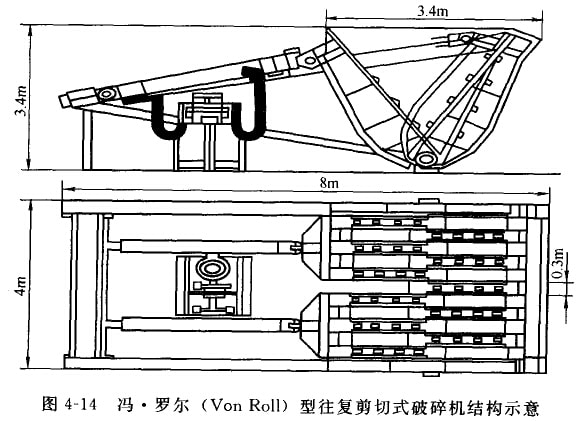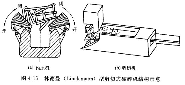 目前廣泛使用的剪切破碎機主要有馮·羅爾(Von Roll)型往復(fù)剪切式破碎機、林德曼(Linclemann)型剪切式破碎機從旋轉(zhuǎn)剪切式破碎機等。