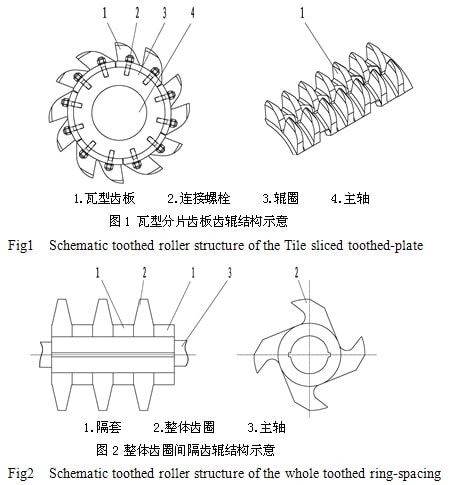 關(guān)鍵字: 齒輥;鷹嘴型齒帽;梯形內(nèi)齒;副齒
