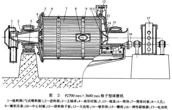 筒體部——筒體是用普通Q235A鋼板卷制而成。筒體兩端有大法蘭和鑄鋼制的磨端蓋連接。筒體的出料端即在出料處的端蓋和筒體連接處有篩板以阻止鋼球和鋼段流出出料端。