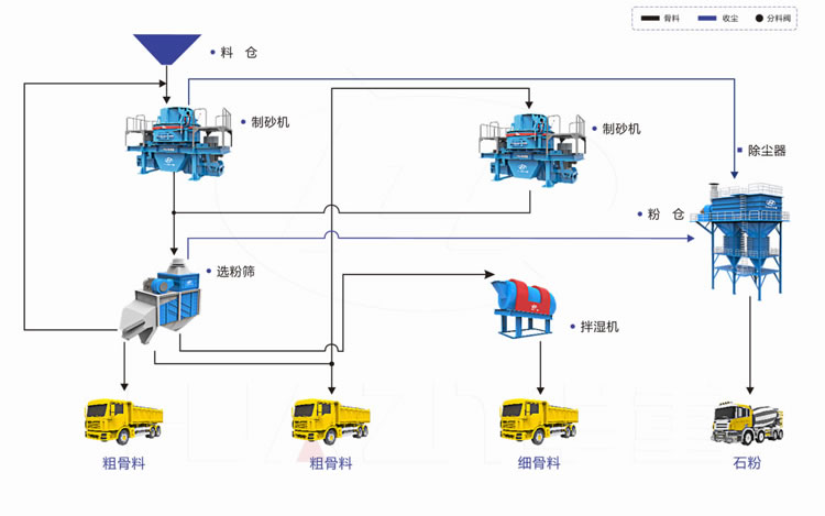 | 主要設備配置 | 制砂機,選粉機,空氣篩,拌濕機,斗提機、除塵器。 | |||||