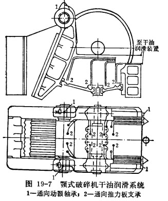 顎式破碎機的潤滑對確保破碎機的長期正常運行具有重要酌意義。復擺領(lǐng)式破碎機的各個潤滑點,包括動領(lǐng)軸承和推力板與肘板間的潤滑都采用干油潤滑。在冬天,如遇干油有凝固可能時,可在其中再加入20%(按重量計算)的汽車潤滑油。根據(jù)運行使用情況、可每1—2天填注油一次,每季度最好換一次潤滑油。